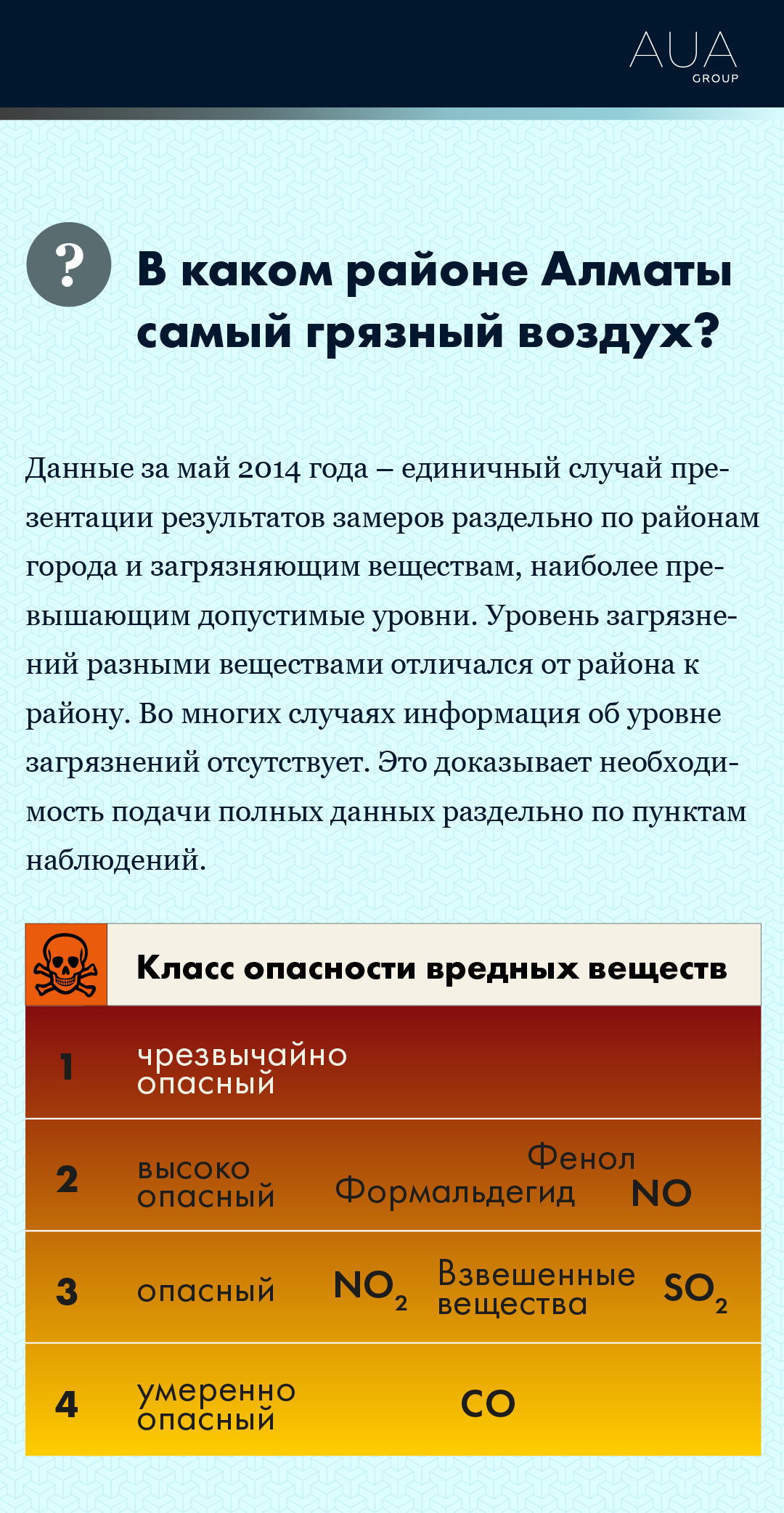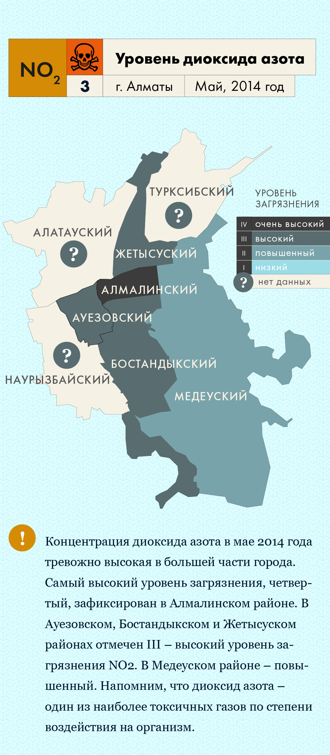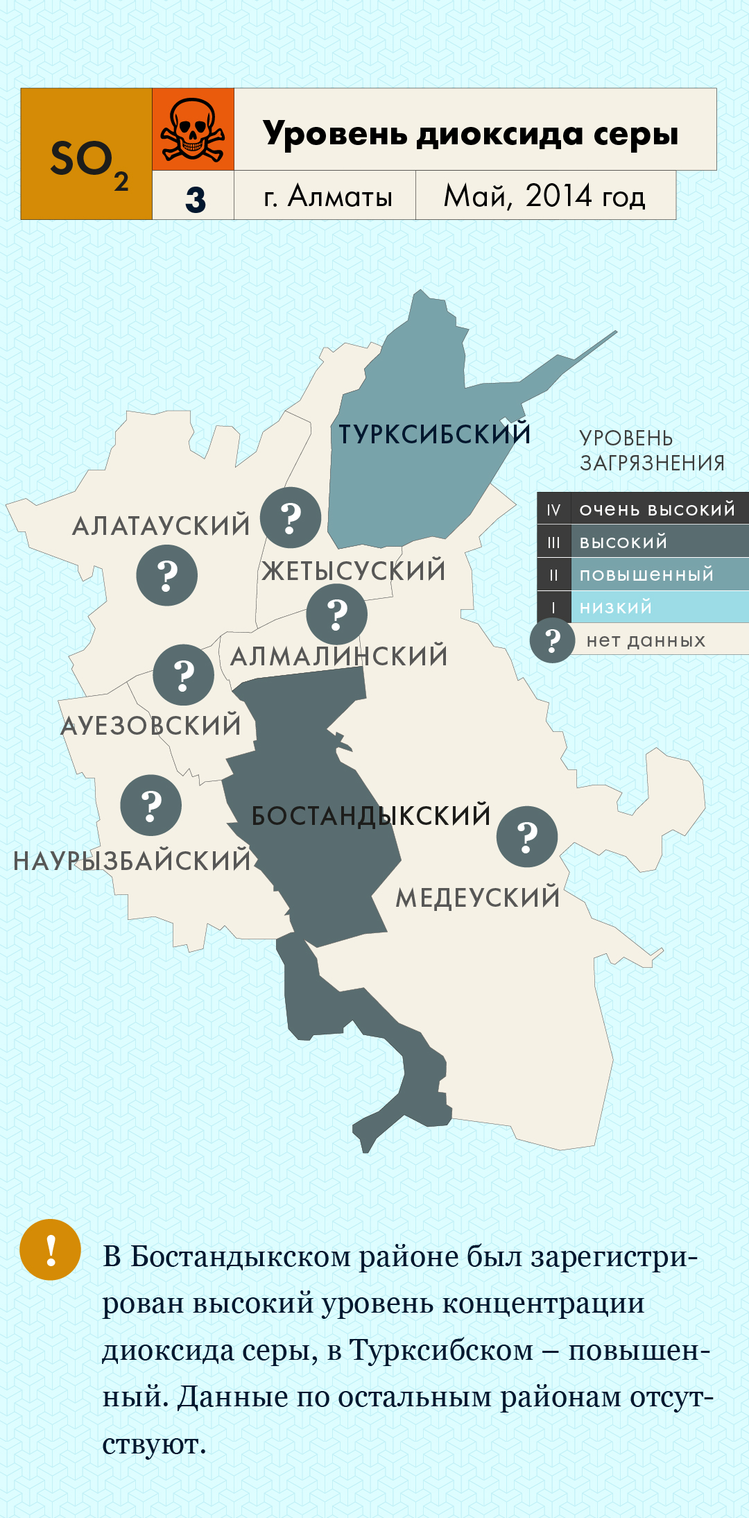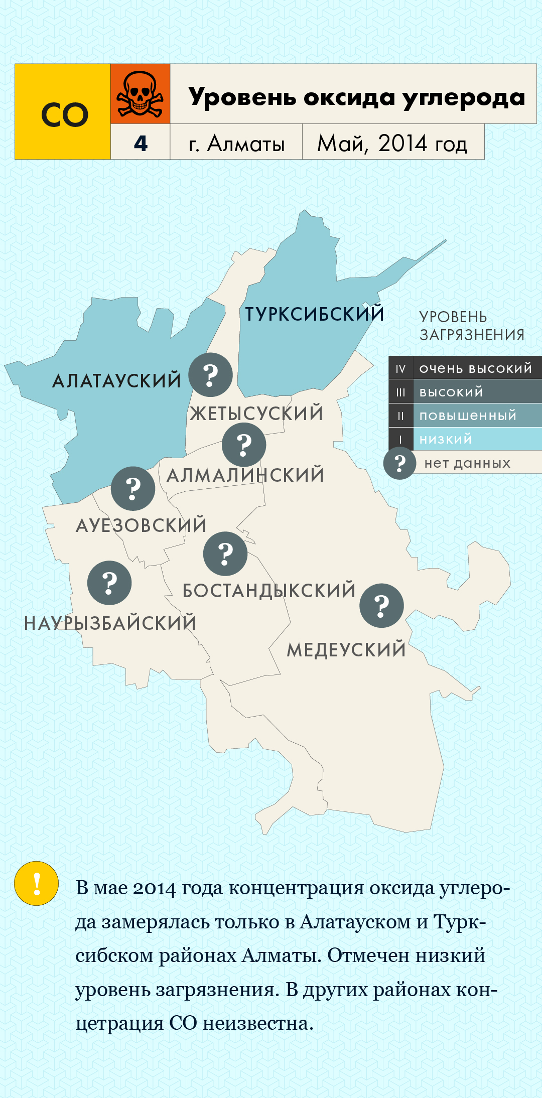 Один из эффективных способов информирования населения о качестве атмосферного воздуха – подача данных отдельно по районам. Это полезно, как для органов, принимающих решения по организации мер для улучшения качества воздуха на местах, так и для людей, проживающих в этих районах. С одной стороны, осведомленное население может обоснованно требовать улучшения среды, в которой непосредственно проживает, с другой – принимать самостоятельные решения по уменьшению рисков собственному здоровью или даже изменению привычек в целях сокращения собственного вклада в загрязнение воздуха.
